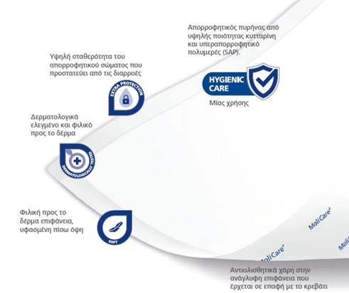 ✔ Υψηλή σταθερότητα του απορροφητικού σώματος που προστατεύει απο τις διαρροές